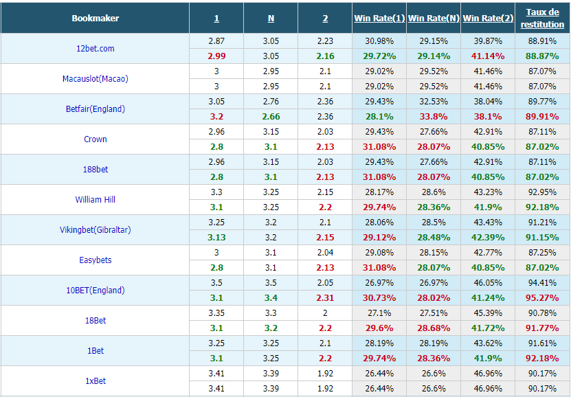 Tips : L'attaque des Gallois est moins forte en phase de groupes. De plus, ils ont perdu ces 2 dernières rencontres contre les Belges. En conséquence, il est difficile pour les premiers d'éviter la défaite cette fois.Indice de confiance: Belgique ★★★★★La Belgique a appelé des stars cette fois. Sa puissance est plus forte. Elle combat pour la première place du groupe pour l'instant.Le handicap asia...