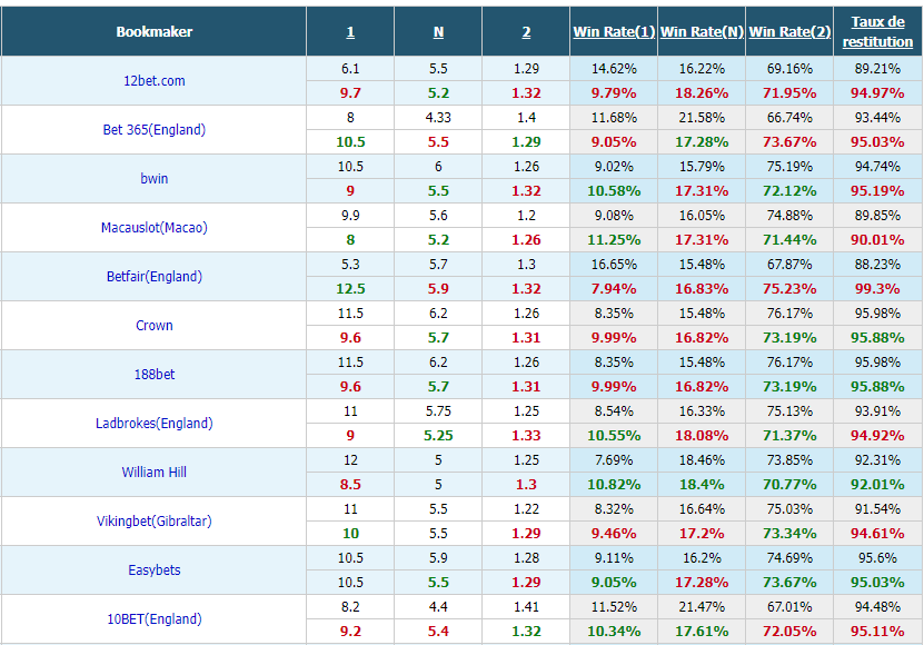 Tips : L'attaque des Gallois est moins forte en phase de groupes. De plus, ils ont perdu ces 2 dernières rencontres contre les Belges. En conséquence, il est difficile pour les premiers d'éviter la défaite cette fois.Indice de confiance: Belgique ★★★★★La Belgique a appelé des stars cette fois. Sa puissance est plus forte. Elle combat pour la première place du groupe pour l'instant.Le handicap asia...