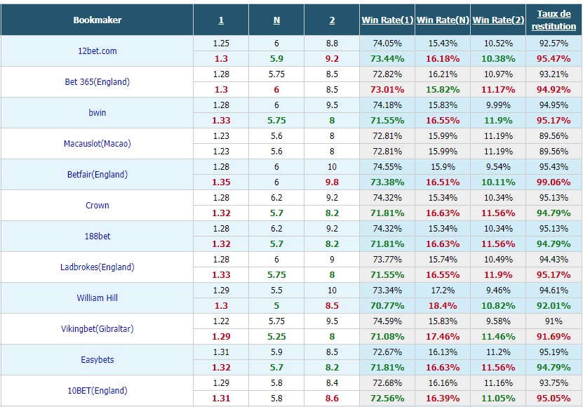 Tips : FC Bayern Munich est le seul qui ait gagné tous les tours de la ligue. Il a inscrit 27 buts dans ces 7 derniers tours. Contrairement, Mönchengladbach n'a pas encore gagné de victoire en ligue cette saison. Il a encaissé 2,5 buts en moyenn par match à domicile. En conséquence, on croit que ce premier gagnera ce match.Indice de confiance: FC Bayern Munich ★★★★ Mönchengladbach Mönchengladbach ...