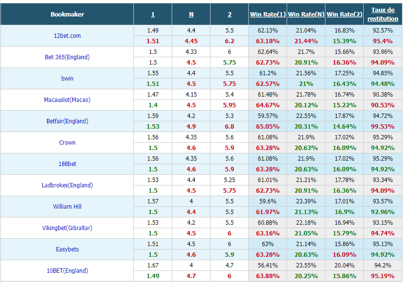Tips : FC Bayern Munich est le seul qui ait gagné tous les tours de la ligue. Il a inscrit 27 buts dans ces 7 derniers tours. Contrairement, Mönchengladbach n'a pas encore gagné de victoire en ligue cette saison. Il a encaissé 2,5 buts en moyenn par match à domicile. En conséquence, on croit que ce premier gagnera ce match.Indice de confiance: FC Bayern Munich ★★★★ Mönchengladbach Mönchengladbach ...