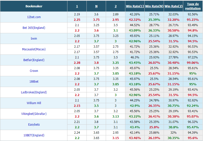 Tips : FC Bayern Munich est le seul qui ait gagné tous les tours de la ligue. Il a inscrit 27 buts dans ces 7 derniers tours. Contrairement, Mönchengladbach n'a pas encore gagné de victoire en ligue cette saison. Il a encaissé 2,5 buts en moyenn par match à domicile. En conséquence, on croit que ce premier gagnera ce match.Indice de confiance: FC Bayern Munich ★★★★ Mönchengladbach Mönchengladbach ...