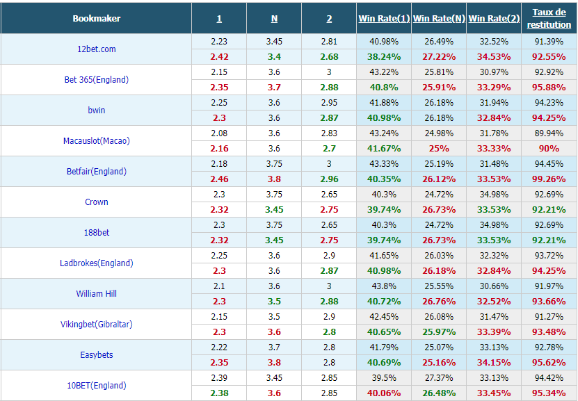 Tips : FC Bayern Munich est le seul qui ait gagné tous les tours de la ligue. Il a inscrit 27 buts dans ces 7 derniers tours. Contrairement, Mönchengladbach n'a pas encore gagné de victoire en ligue cette saison. Il a encaissé 2,5 buts en moyenn par match à domicile. En conséquence, on croit que ce premier gagnera ce match.Indice de confiance: FC Bayern Munich ★★★★ Mönchengladbach Mönchengladbach ...