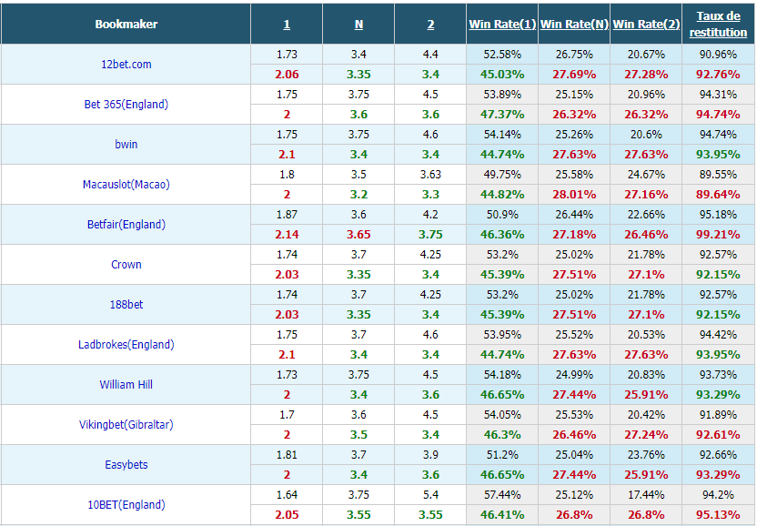 Le handicap asiatique ouvre -0/0,5. Chacun a gagné 1 de ces 5 dernières rencontres, mais l'attaque d'Étoile rouge de Belgrade est forte à l'extérieur. Donc l'extérieur resterait invaincu cette fois.