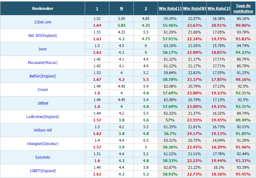 VfL Wolfsburg a gagné 3 victoires et 1 nul dans ces 4 dernières rencontres. Le handicap asiatique ouvre -1, mais la puissance de VfL Wolfsburg n'est pas assez forte. Donc UNDERDOG est supporté cette fois.