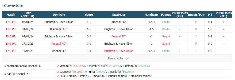Brighton & Hove Albion est vaincu par Man Utd dans le match dernier (2-4). C'est sa première défaite de ces 6 derniers matchs.